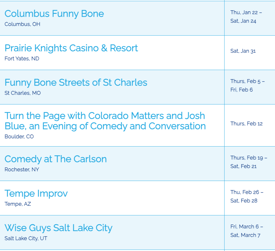 Josh Blue's 2026 Tour